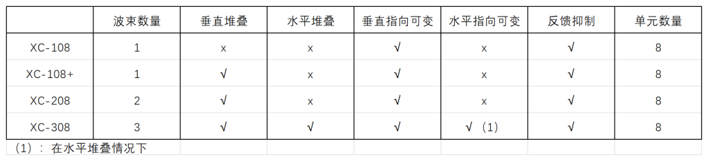 - 三波束独立可调: 指向、波束宽度、旁瓣抑制、波束中心位置、增益、延时、高低通滤波(种类和斜率可选)、8段PEQ(含斜率型EQ)
